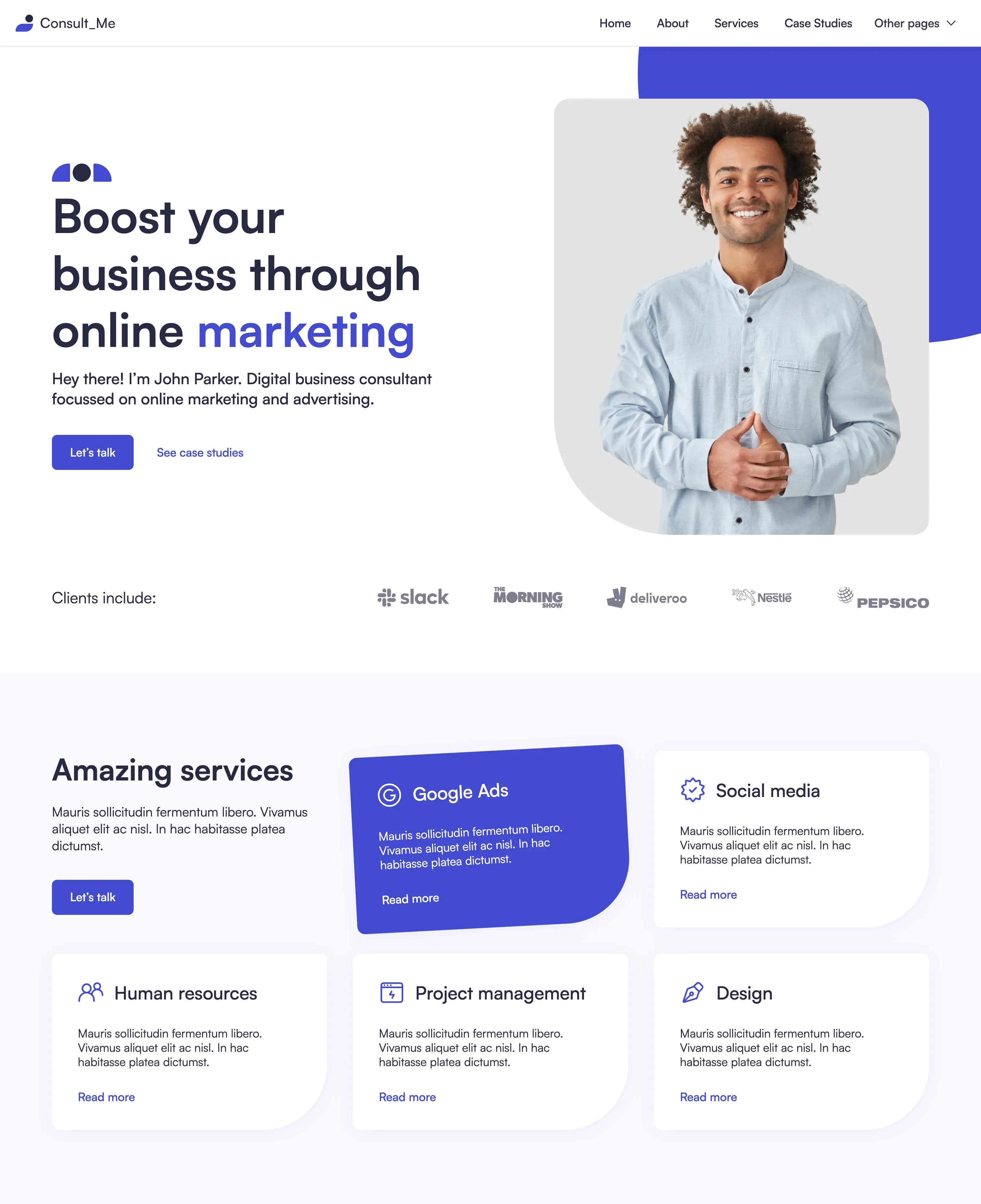 Yes, we know... it's easy to say it, but that's the fact. We did put a lot of thought into the template. Consult Me was designed by an award-winning designer. Layouts you will find in our template are custom made to fit the industry after carefully made research.